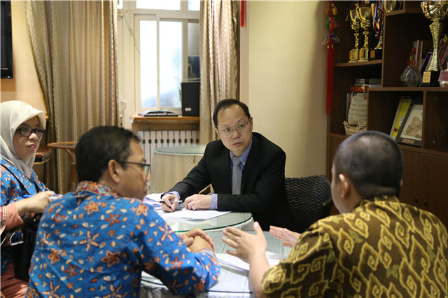 墨邱布安南大學教務處HADRI MULYA DAHLIAR副主任對汪瀅的介紹表示了感謝,此行代表團包括通信科學學院、電子工程學院、計算機學院、機械工程學院及管理學院各位院領導和講師。通過與北理工相應學院院領導的探討,將進一步擴展本科雙學位的專業領域,促成碩士1+1雙學位的可能性以及探討了教學管理模式。
