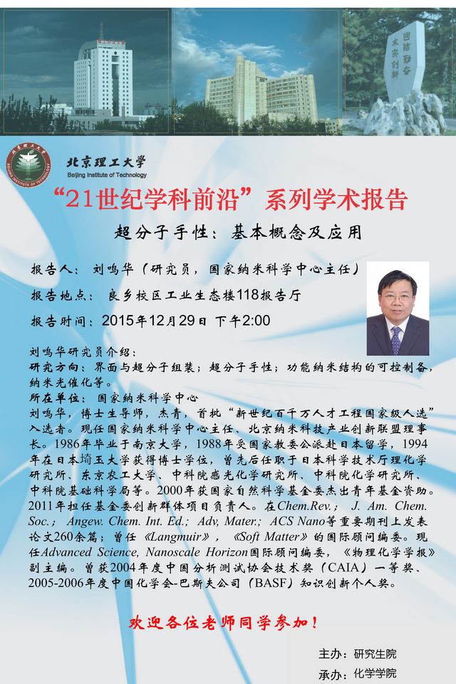 【化學學院】“21世紀學科前沿”劉鳴華研究員學術報告通知