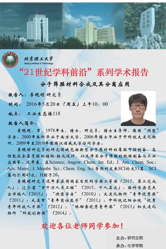 【化學學院】“21世紀學科前沿”李硯碩研究員學術報告通知