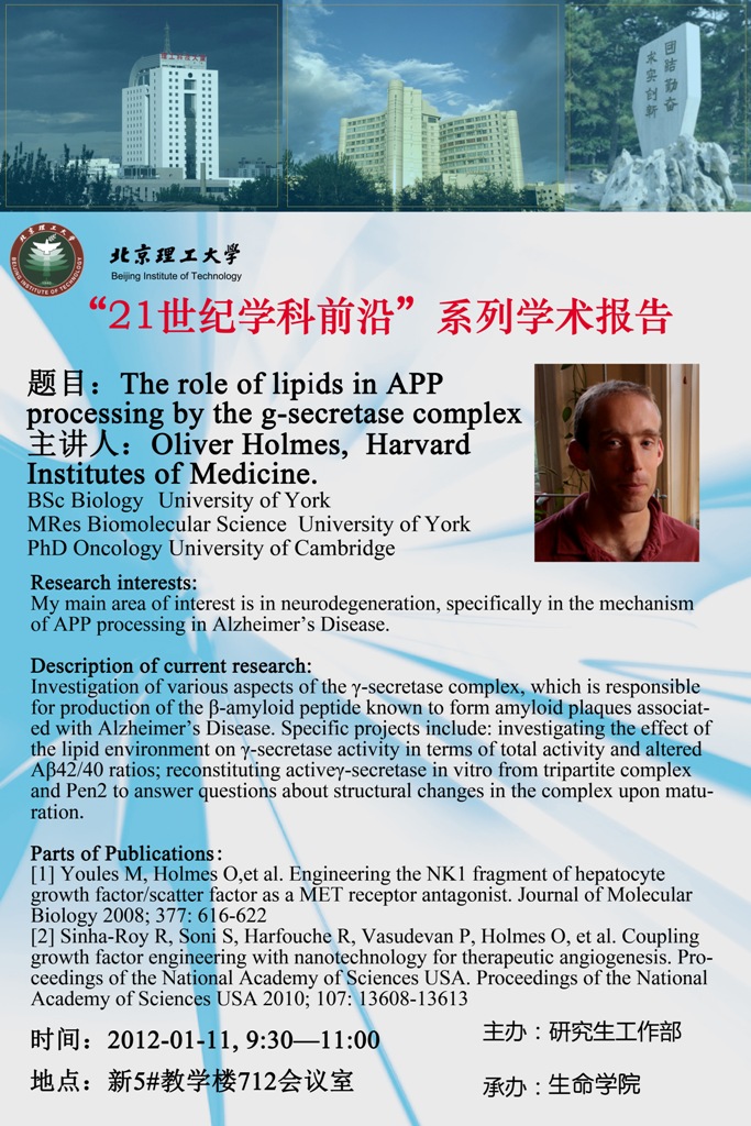 Oliver Holmes, 哈佛醫學院博士,主要研究神經退行性疾病,尤其在與阿爾茲海默癥有關的APP剪切機制方面有很深的造詣。