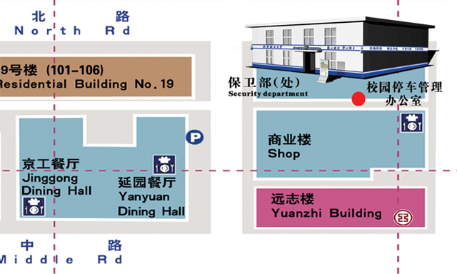 辦證地點:校園停車管理辦公室(延園餐廳東北方向,菜市場北入口對面)。詳見下圖所示: