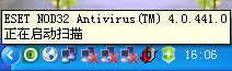 安裝完成之后,NOD32軟件將以圖標的形式,出現在Windows桌面右下角的托盤區域,并自動進入“掃描”流程。