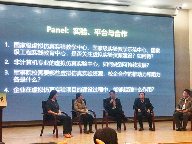 以“實驗、平臺與合作”為主題的討論中,北京師范大學周明全教授、北京大學郭艷軍教授、陸軍裝甲兵學院許仁杰副教授和微軟亞洲研究院蔣運韞總監等專家作為主講嘉賓,分別介紹了地球科學國家級虛擬仿真實驗教學中心的建設與教學改革、軍隊院校的虛擬資源需求特點、微軟教育部協同育人項目計劃等方面的情況,并就如何開展虛擬仿真實驗資源內容建設、支撐平臺開發與產學研合作等方面的問題進行了現場交流。隨后大會進行了校企合作分組討論,由工委常委、思科公司韓江經理和工委副秘書長、北京理工大學陳宇峰副教授分別主持平臺組和實驗組,圍繞廣泛關注的問題開展現場討論并進行了總結。
