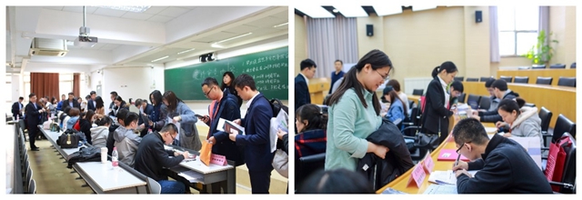 下午,已通過提前面試的MBA考生和EMBA考生被分成10個考場進行復試面試,20余位面試考官對學生的英語口語能力進行了現場考核。