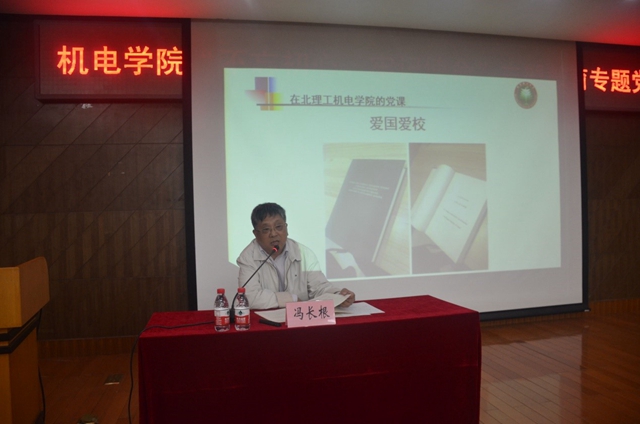 為全面貫徹落實習近平總書記在“不忘初心、牢記使命”主題教育工作會議上的重要講話和《中共中央關于在全黨開展“不忘初心、牢記使命”主題教育的意見》精神,加強全院師生的愛國主義教育,10月21日下午,機電學院在中關村校區圖書館報告廳召開“不忘初心、牢記使命”主題教育專題黨課,邀請馮長根教授為主講人,機電學院全體院領導、全體教工黨支部書記、學生黨支部書記、新聘任教師及部分學生代表參加了此次黨課。